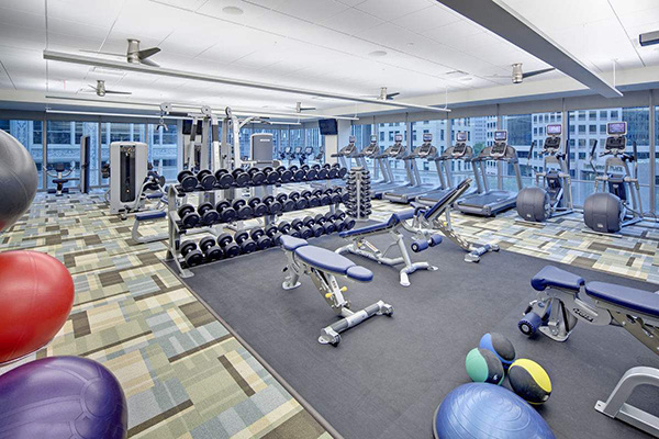 3、楼层的承重。健身房装修划分区域时,对器械健身区的安置一定要考虑承重问题。像跑步机、动感单车、登山机、椭圆运动仪等都是重量较大的器械,对于楼层的压力很大。